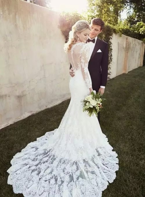 Essense of Australia sexy backless wedding dress is to amazing, it is absolutely can not without lace sketched the beautiful outline. And the fishtail skirt is like petals spread, beautiful.
